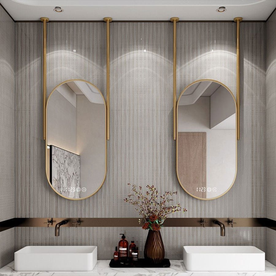 LED Capsule Shape Ceiling Mirror with led lighted,this hanging mirror is different from the ordinary mirror. It can only be equipped with many functions, such as infinite dimming, CCT three lights, demisting, and multi-function, which can help your bathroom activities more convenient. The shape of the pill allows it to achieve multiple purposes.