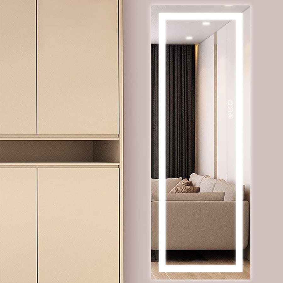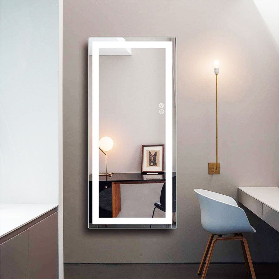 LED Lighted Dressing Mirror comes with four pre-installed d-ring hooks for both vertical hanging making it a functional and stylish decorating tool its full body size is also perfect to hang over a bedroom or bathroom door.this full-length wall mirror is designed with a stepped aluminum alloy frame, makes a sleek, eye-catching addition to any rustic bedroom or entryway.